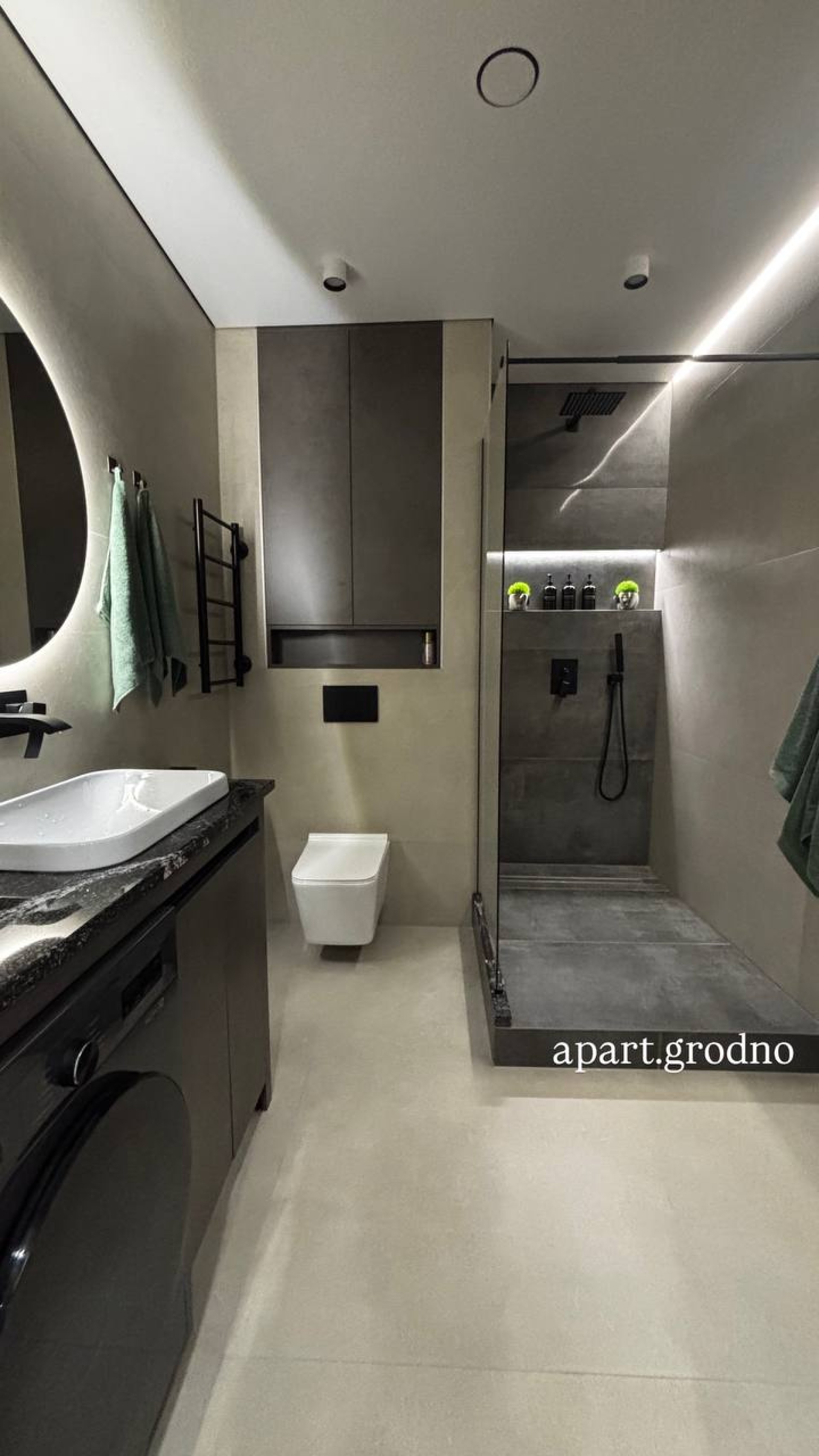 Просторная ванная комната: Стиральная машина, феномен, полотенце, гель для душа, шампунь, бальзам для волос, одноразовые щётки + паста