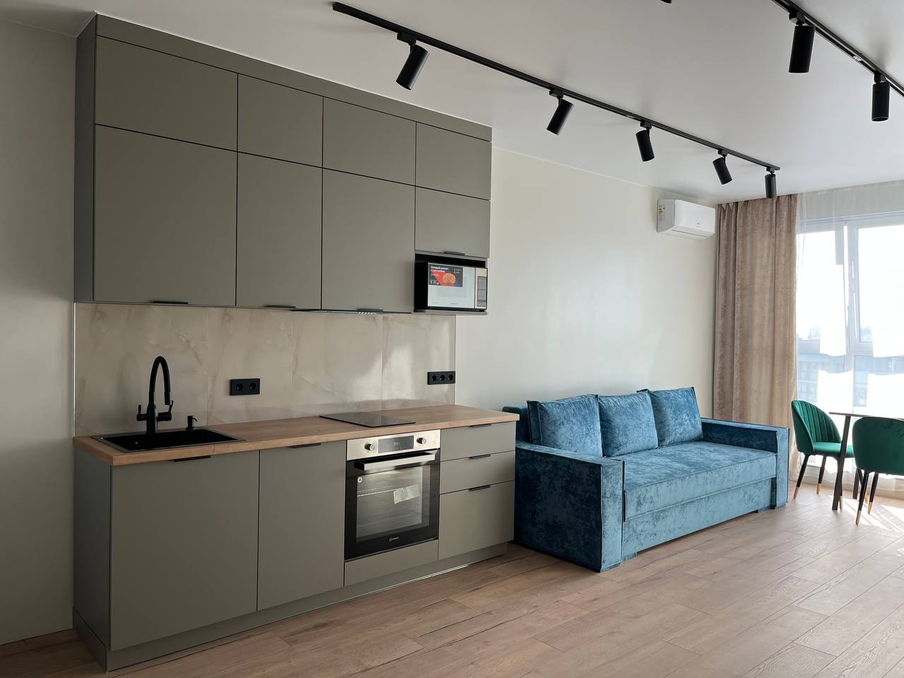 Современный ремонт и стильная мебель создают приятную атмосферу, а полностью оборудованная кухня и санузел обеспечивают все необходимые условия.