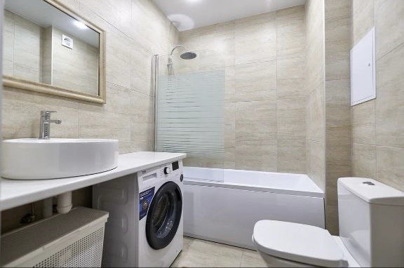 Вся необходимая техника: телевизор, холодильник, стиральная машина, микроволновая печь, чайник, плита