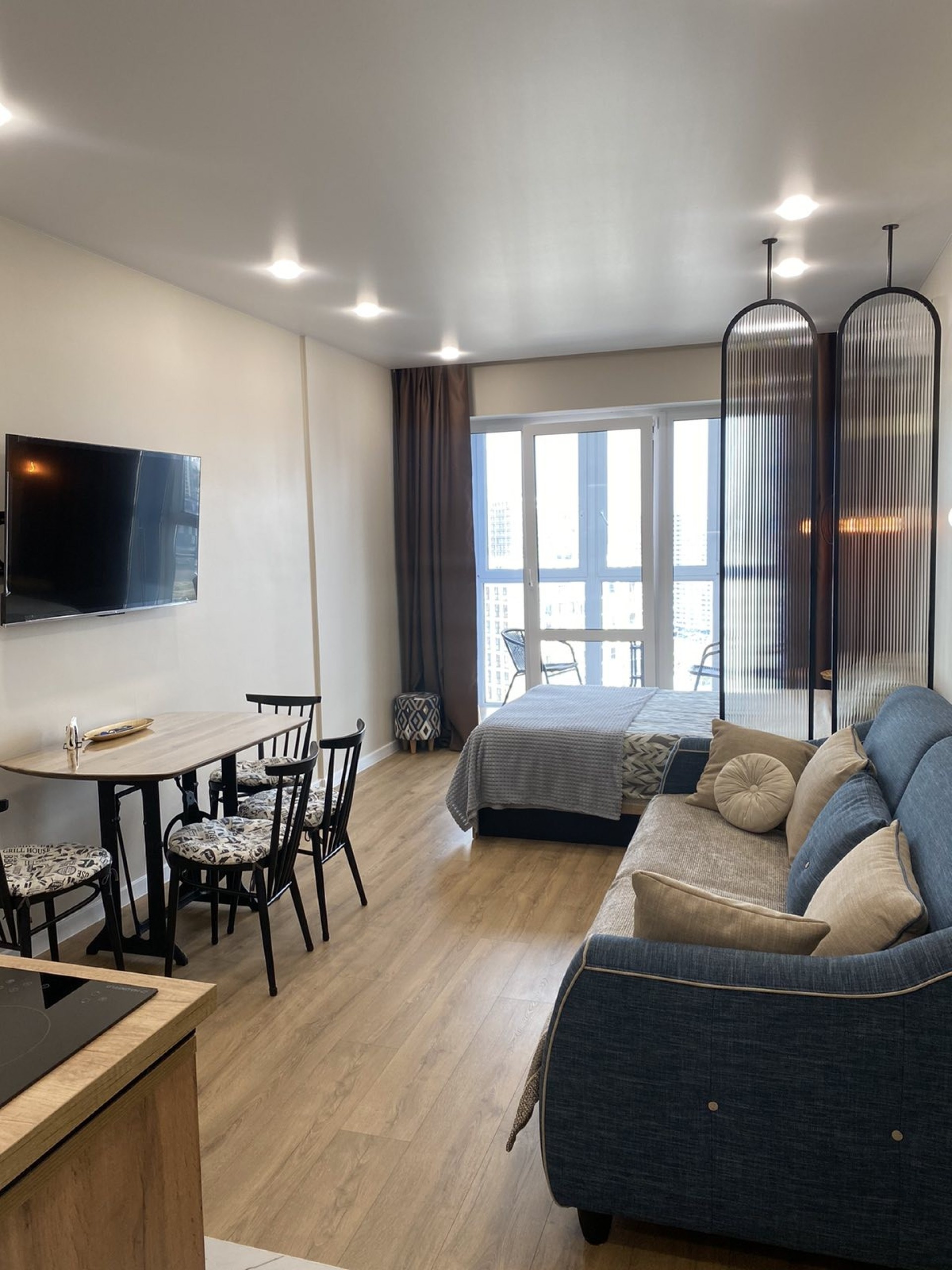 Стильная студия с шикарным панорамным видом!!! Метро Аэродромная 300 м! Размещение до 4 человек.