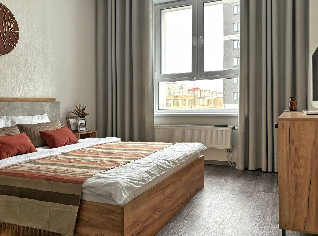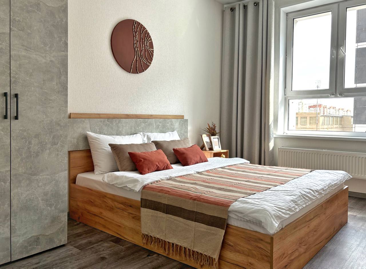 Aтмосфеpнaя кваpтира в совpемeнном ЖК для 2-x гоcтей