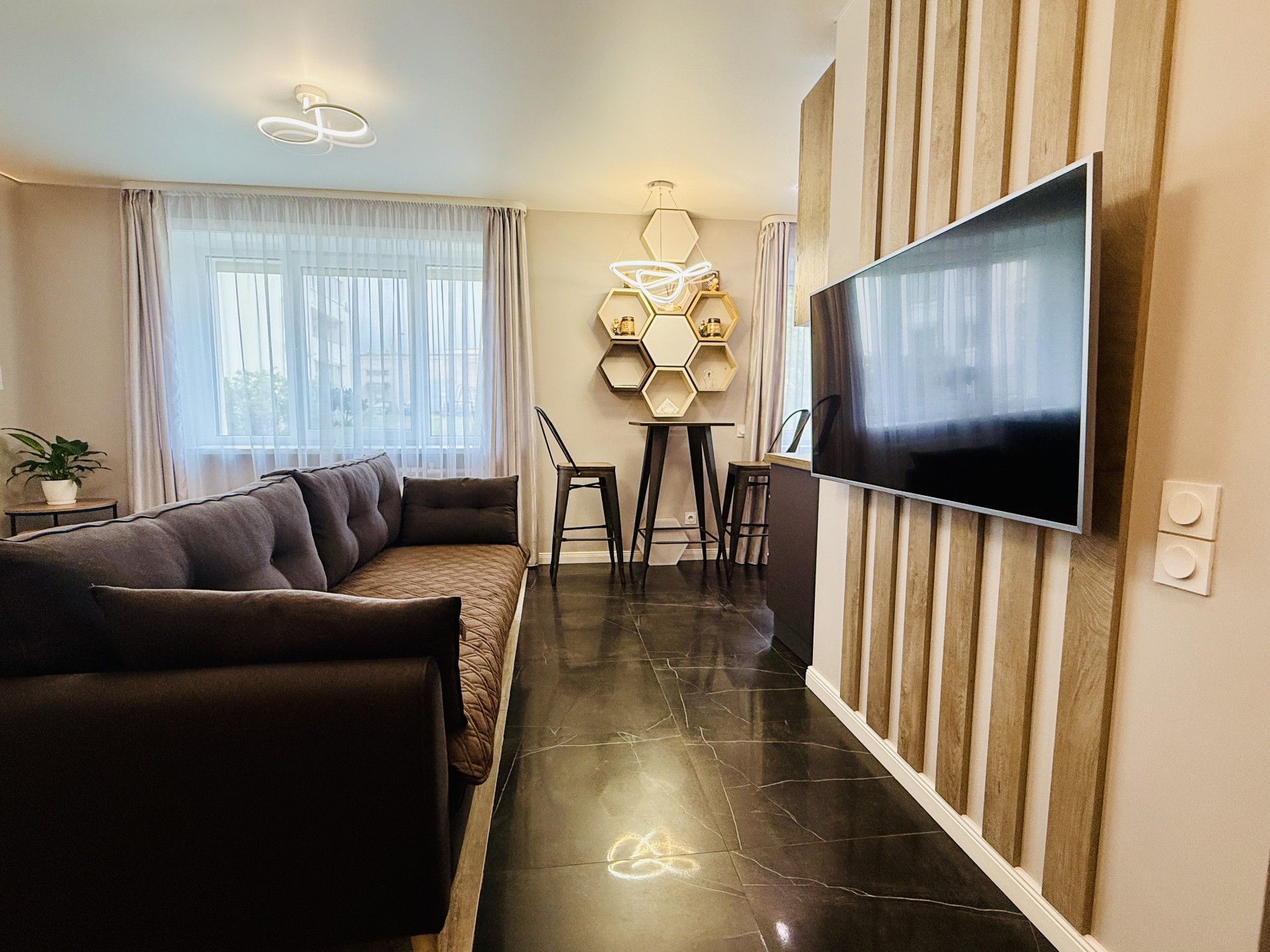 Современная квартира в центре Витебска рядом с Летним Амфитеатром и зеленой зоной. Укомплектована всем необходимым, содержится в идеальном состоянии. Предоставляем отчётные документы и документы для юрид. лиц, возможен безналичный расчет. Продуманный дизайн, качественная мебель, электрические роллеты на окнах (затемнение до100%), смарт ТВ, тропический душ, сантехника премиум класса, полностью укомплектованая кухня. Профессиональная уборка перед каждым заселением, чистое белье и полотенца. Хорошая звукоизоляция. В квартире НЕ КУРЯТ. Мероприятия запрещены, проживание с животными не допускается. При бронировании производится предоплата. Указанная цена действует при длительном проживании. В выходные и дни повышенного спроса цена договорная.