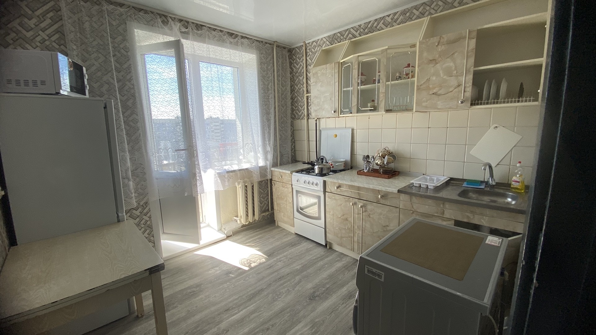 Холодильник,стиралка,микроволновка,посуда,пастельное,кабельное,интернет(есть все для проживания на дни и недели).