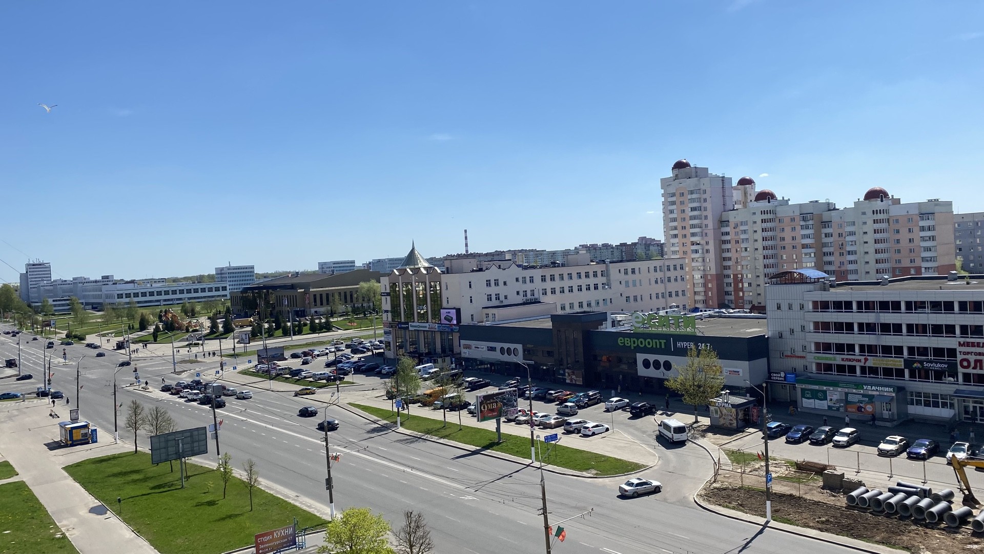 Через дорогу круглосуточный Евроопт, ТЦ ТРИО, Ледовый дворец, парк 1000 - летия.